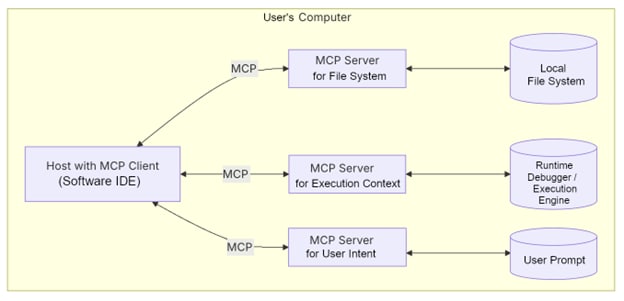 To see how MCP might be used, consider a context-aware code assistant. Typically, this kind of application would sit within a programmer’s IDE so it can assist as the programmer develops software. With MCP, the code assistant would likely receive elements such as the file state, which would include elements like the current file, two recently modified files, and user intent codified as instructions, such as, “refactor this function to remove side effects.” A final piece that is vital for development is the execution context, including the call stack, variable types, and breakpoints (Figure 1).