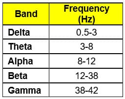 Brain waves are classified into one of five general categories based upon their frequency (Table 1). Medical researchers break these into bands because each band represents a distinct way a brain operates in performing its functions. For example, critical activities such as memory and recollection happen especially, but not exclusively, in the theta band. Researchers use these bands to analyze what might be going on if it appears signals are too little, too great, or an optimal amount.